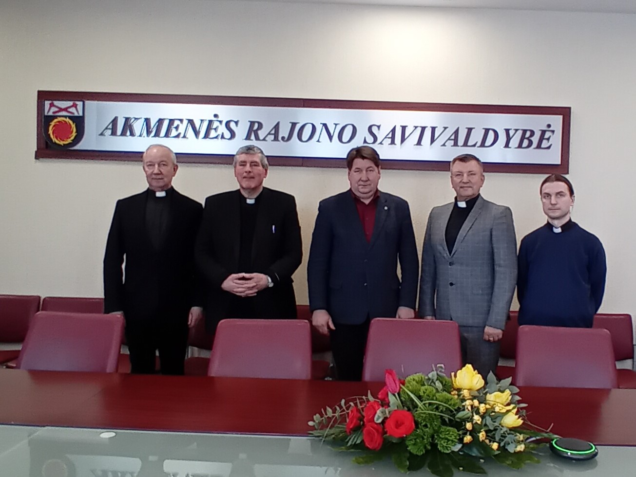 Savivaldybės meras Vitalijus Mitrofanovas tiesiogiai, vicemerė Inga Vismantienė ir Administracijos direktorė Aromeda Laucienė virtualiai kalbėjosi su Akmenės dekanato dekanu, Naujosios Akmenės Šventosios Dvasios Atsiuntimo parapijos klebonu Rimvydu Adomavičiumi, Akmenės Šv. Onos parapijos klebonu kan., bažn. t. dr. Algiu Genučiu, Papilės Šv. Juozapo parapijos klebonu Rimvydu Marozu, Ventos Švč. Mergelės Marijos Nekaltojo Prasidėjimo parapijos klebonu relig. m. mgr. Andriumi Baksčiu.