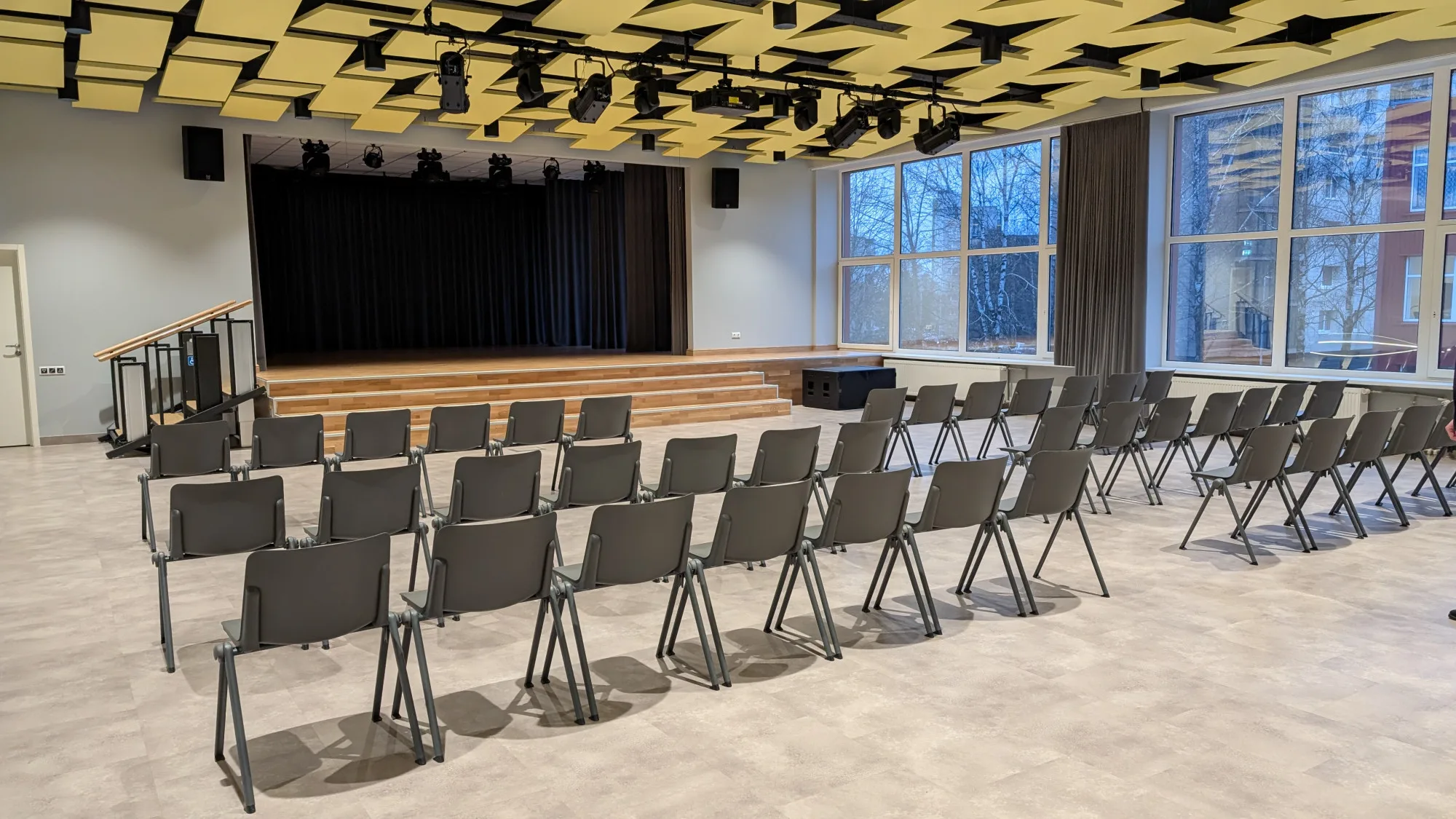 Aktų salėje įrengtas meninis apšvietimas, suteikiantis renginiams daugiau vizualinio išraiškingumo, taip pat įsigyta 200 naujų kėdžių žiūrovams. Įrengta moderni operatoriaus darbo vieta, iš kurios valdoma visa salės technika, ir medijų studija su mini filmavimo erdve. Joje mokiniai mokysis kurti vaizdo turinį, susipažins su filmavimo ir montavimo pagrindais, o parengtus darbus galės pristatyti salėje ir analizuoti kartu su specialistais.