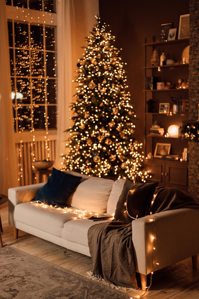 Eglutės su daug šviesų ir minimaliu dekoru / nuotr. Freepik