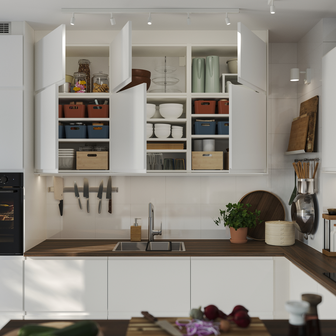 Virtuvė tikriausiai yra ta namų zona, kurioje daiktams laikyti skirtos vietos bene daugiausia. Vis dėlto, daugelis jos norėtų ir dar daugiau. Norint geriau išnaudoti turimas spinteles, interjero dizainerė pataria išbandyti įstatomas lentynas. Jos spintelės plotą padalins į kelis aukštus ir taip sukurs daugiau vietos indams ar maisto produktams sudėti.