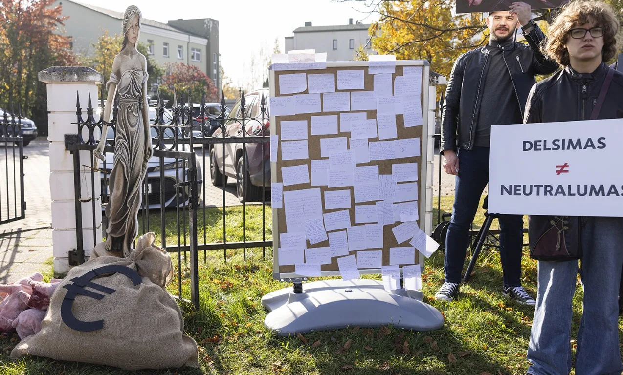 Šįkart vizualiu protesto akcentu tapo beveik dviejų metrų aukščio teisingumo deivės Temidės figūra su VMVT direktorės A. Mikalauskienės veidu. Tradiciškai Temidė simbolizuoja teisingumą ir pusiausvyrą, tačiau šįkart ji laikė svarstykles, kuriose pinigai nusveria paršelius. Tokia meninė išraiška perteikė žinutę, kad šiuo metu gyvūnų gerovės klausimu svarstyklės krypsta į ekonominių interesų pusę.