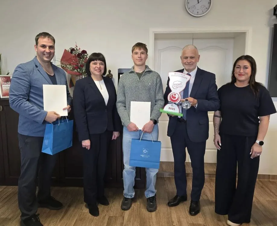 Savivaldybėje pasveikintas svarbią pergalę pelnęs jaunasis sportininkas – Europos karatė kiokušin vicečempionas Jonas Stanevičius ir jo treneris Lukas Kubilius. Gargždų „Vaivorykštės“ gimnazijos auklėtinis iš Vengrijoje, Debrecene, vykusio 2025 m. Europos čempionato grįžo su sidabro medaliu – pasiekimu, kuris garsina ne tik „Shodan“ mokyklą, bet ir visą Klaipėdos rajoną.