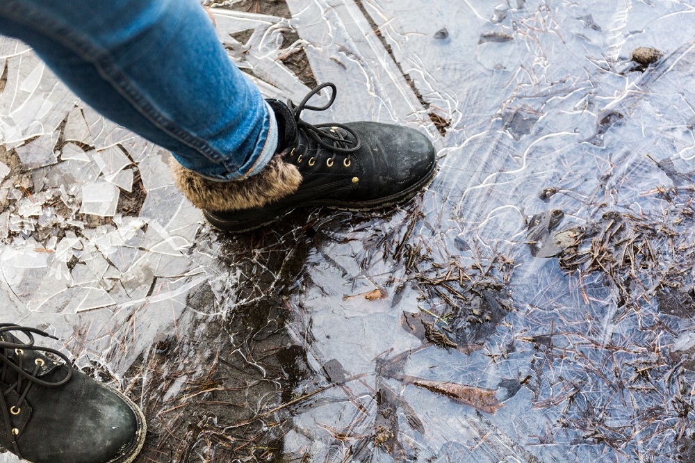 - Atidžiai stebėkite grindinį po kojomis. Netgi gerai nuvalytas ir pabarstytas grindinys gali būti pavojingas dėl nuolat kintančių oro sąlygų – jei lijundra tęsiasi.