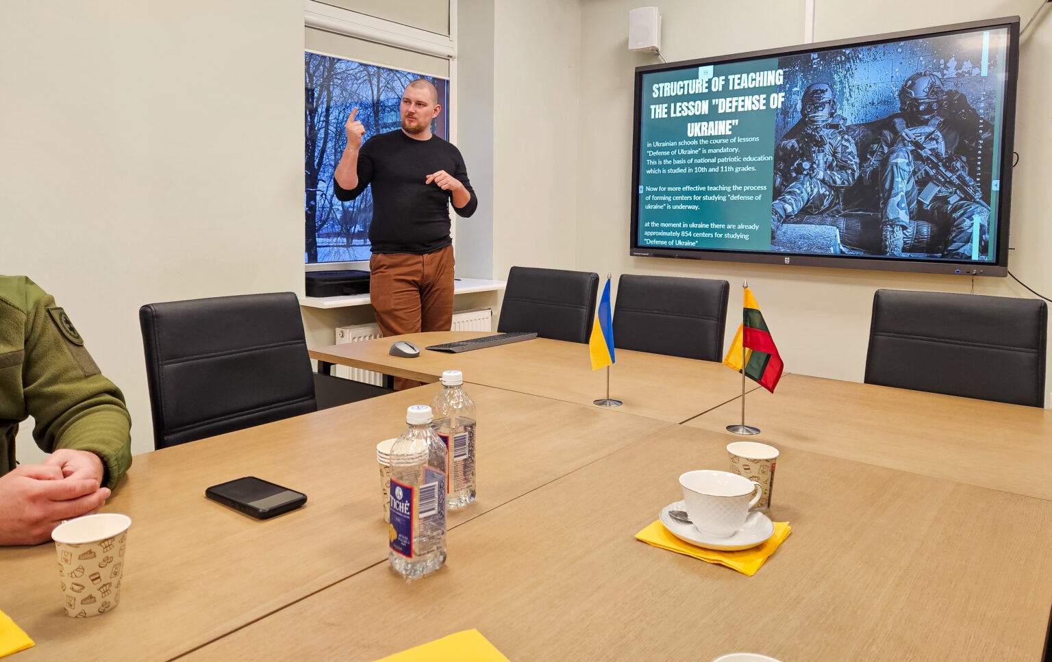 Tytuvėnų 605 kuopos Kelmės būrio šauliai trumpai pristatė savo veiklą, o Švietimo, kultūros ir sporto skyriaus vedėja Justina Zaleckienė padėkojo Ukrainos atstovams už išsamią ir prasmingą prezentaciją bei papasakojo apie planuojamą pilotinį karinio parengimo projektą.