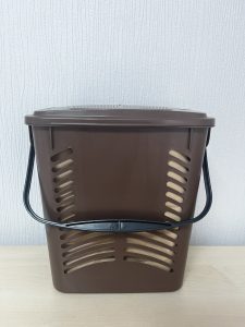 Surinktas atliekas vėliau reikia išnešti ir išmesti į tam skirtus maisto ir virtuvės atliekų konteinerius, esančius prie daugiabučių namų.