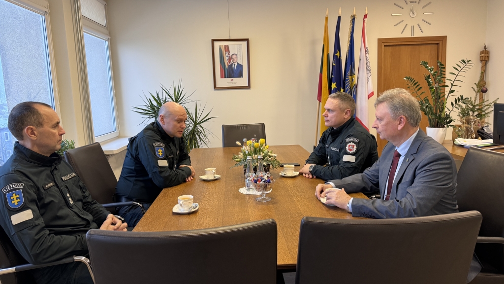 Klaipėdos apskrities viršininko pavaduotojai Raimondas Vaitkevičius ir Ramūnas Šideikis kartu su Plungės rajono policijos komisariato viršininku Gintautu Pocevičiumi šiandien susitiko su Plungės rajono savivaldybės meru Audriumi Klišoniu, kad aptartų komisariato viršininko perkėlimo į Klaipėdos miesto PK viršininko pareigas klausimus.