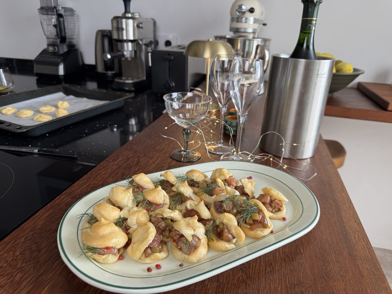 - Į pyragiukus dedu po šaukštą tartaro ir laukiu svečių – skanaus!